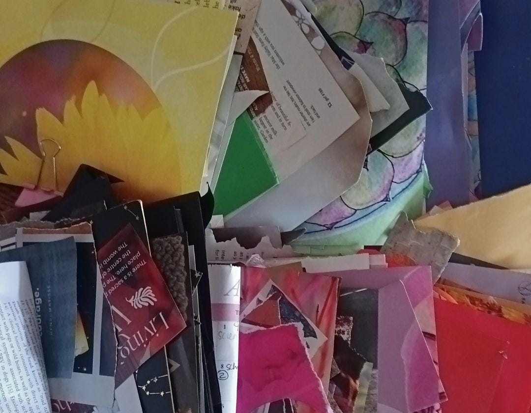 I love mixed media. I don’t yet know whether I’ll use paint, what kind, or whether it will remain entirely paper-based. I’m letting it unfold. The point of this project is to stay connected to the creative process itself and not become attached to a particular outcome.
